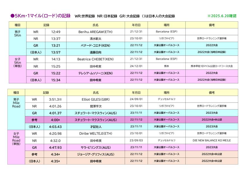・1マイル(ロード)※世界陸連[WA]・日本陸連公認コース